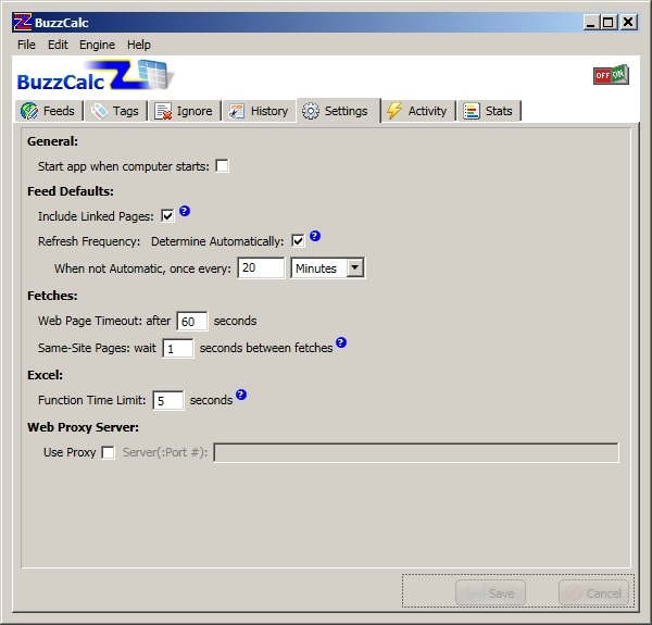 These can be set for an individual feed, but if nothing is set, the feed will use these defaults. See the Feeds Tab for more information.